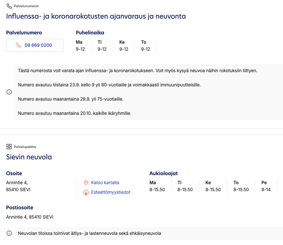 Influenssa- ja koronarokotukset Sievissä syksyllä 2025
