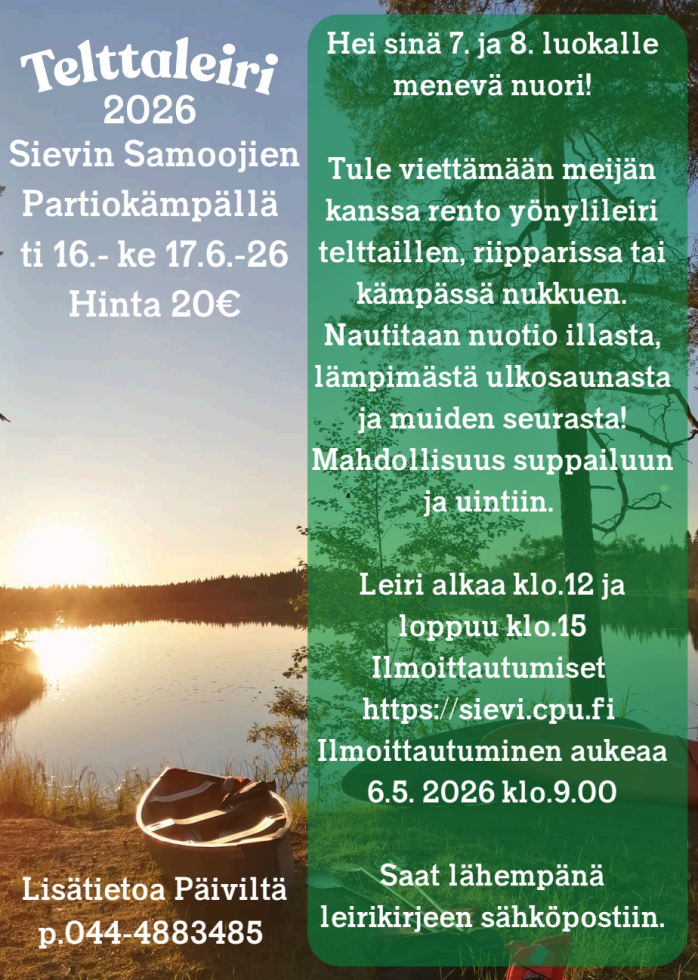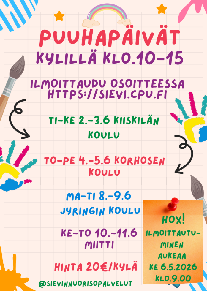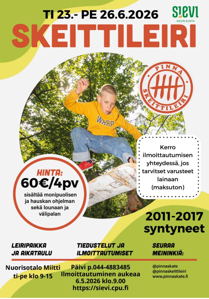 Lisätietoja antaa nuorisotyöntekijä Päivi Korkeakangas p. 044 4883 485.