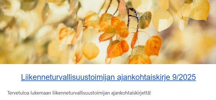 Liikenneturvallisuustoimijan ajankohtaiskirje Liikenneturvallisuustoimijan ajankohtaiskirje 9/2025