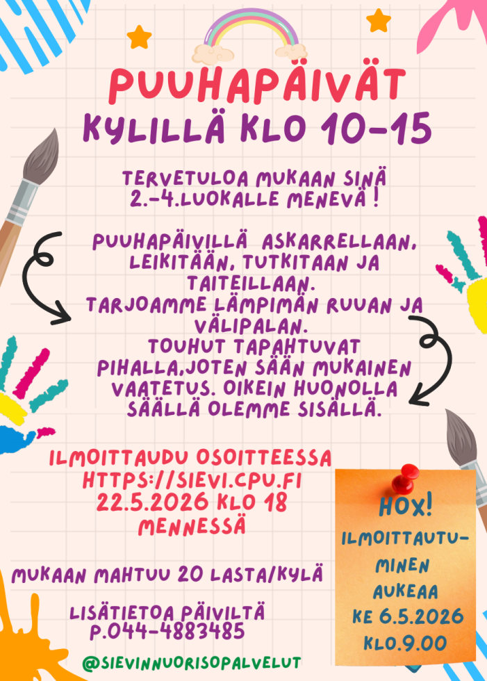 Lisätietoja antaa nuorisotyöntekijä Päivi Korkeakangas p. 044 4883 485.