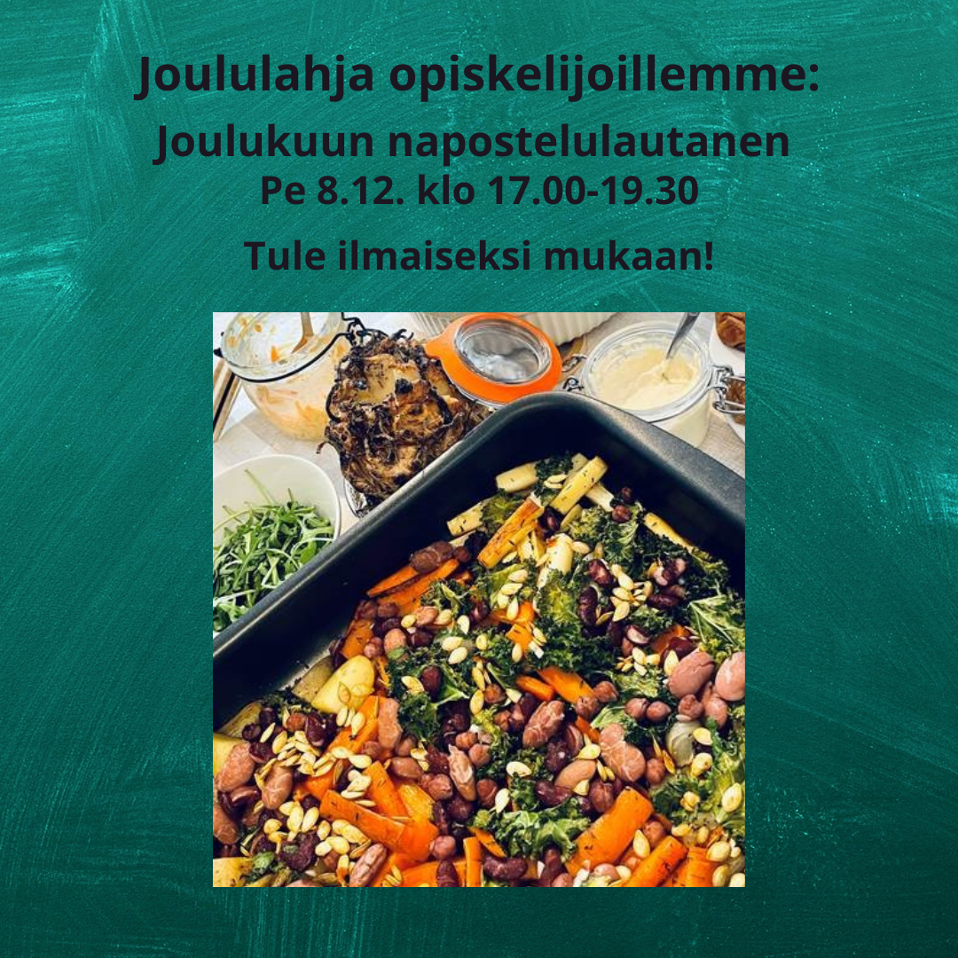 Joululahja opiskelijoillemme! Tule ilmaiseksi mukaan kokeilemaan uutta tapaa osallistua ruokakurssille!